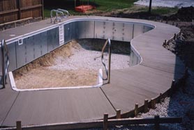 Most builders pour the concrete decking once all of Step Two is completed, but in some cases and with certain water table situations, the liner will be installed before the decking is poured. The pool structure is strong enough to allow installation to proceed in either manner.